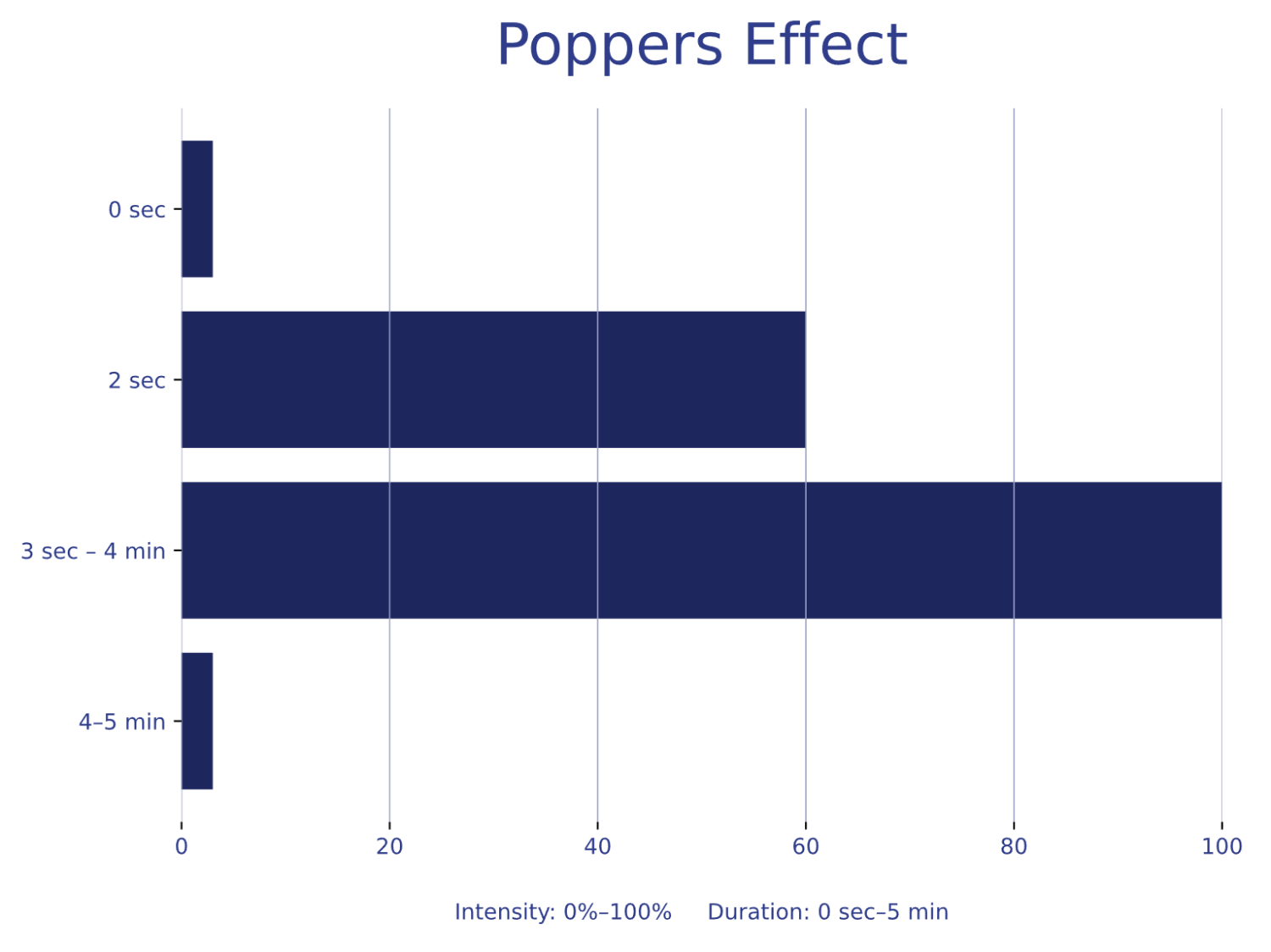 Specifically, Poppers will make you feel warm, your heart will beat faster and you may experience slight dizziness. The effect sets in after around 5 to 15 seconds and lasts between one minute and a maximum of ten minutes, depending on how many Poppers you have inhaled.
