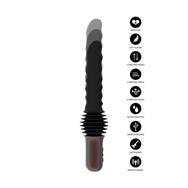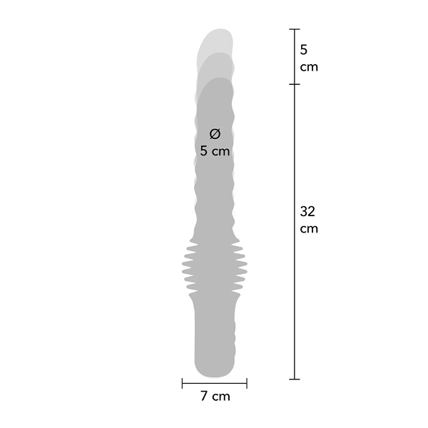 Anal Power Thrusting Vibrator wurde mit höchster Präzision gefertigt für ein sanftes Einführen und intensive, tiefe Penetration. Dank des verstellbaren Saugnapfs ist auch freihändiges Spielen möglich. Mit einer Stosskraft von bis zu 5 cm misst dieser Vibrator 32 cm und erreicht bei voller Ausdehnung ganze 37 cm. Aktiviere den extrem starken Motor mit bis zu 80 Stössen pro Minute entlang des Schafts und gib dich den tiefen, vibrierenden Wellen hin, die dich zu einem explosiven Orgasmus führen.