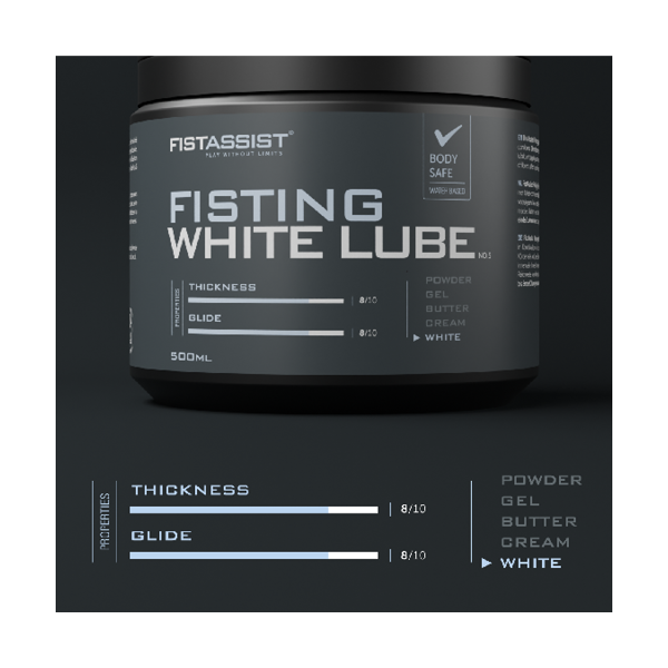 Die Fisting White Lube 500ml verbindet Visualität mit viszeralem Erlebnis. Dieses dicke, cremige, spermaähnliche Gel ist für alle, die ihr Gleitmittel gerne auffällig mögen. Die Fisting White Lube 500ml ist kissenweich, langsam fließend und für Marathon-Sessions gemacht – sie bietet Gleiten mit Drama und Haltbarkeit. Perfekt für Spielzeugeinsätze, Rollenspiele und hochintensive Edge-Play-Sessions.